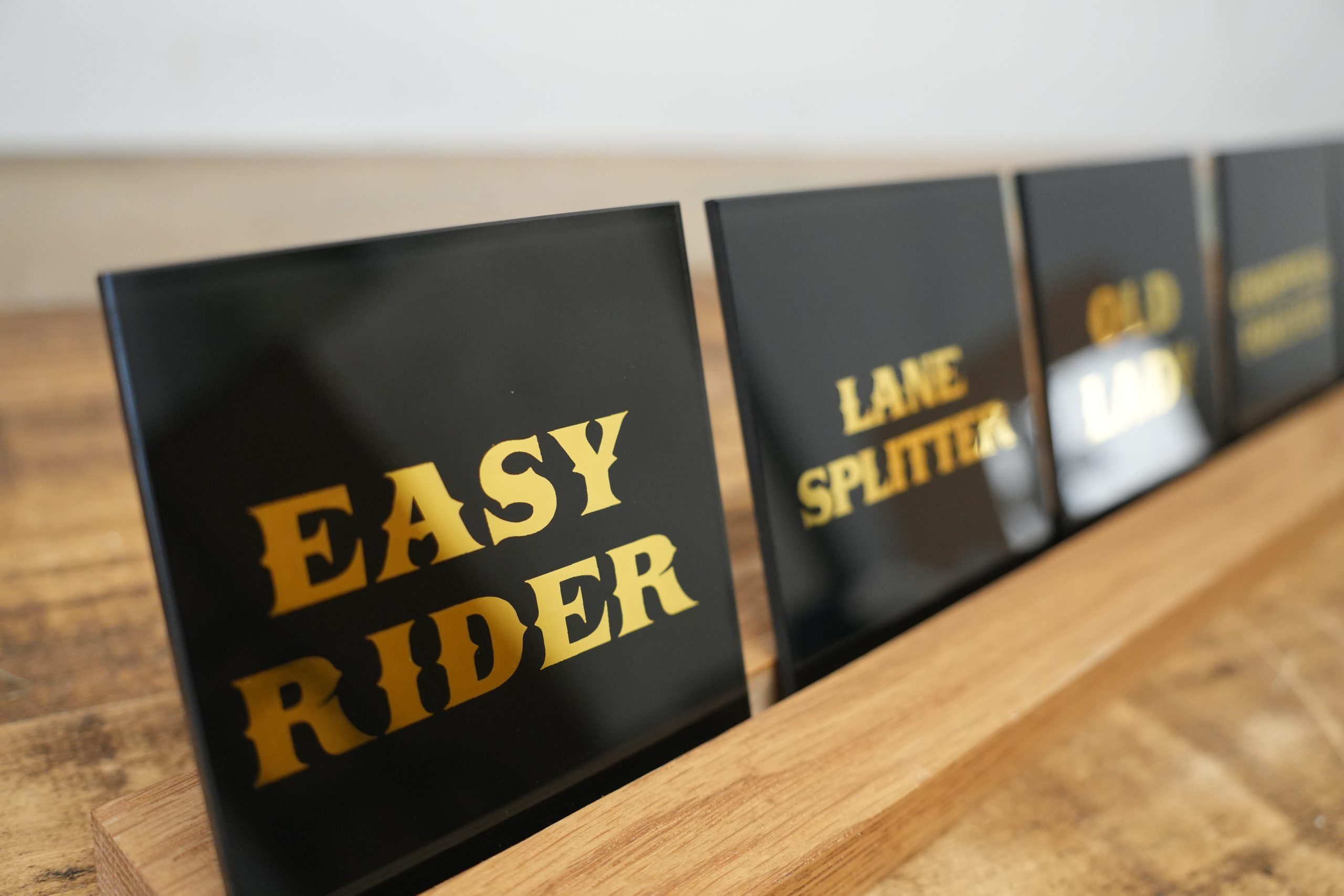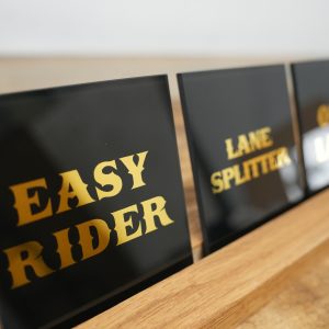 Add a touch of rebellious elegance to your home or workspace with this handmade glass coaster, gilded by hand using genuine 24ct gold and pure silver leaf. Each piece features classic motorcycle-inspired phrases like “Stay Gold,” “Easy Rider,” and “Forever Two Wheels”, a perfect nod to chopper culture, rock & roll spirit, and vintage Americana.