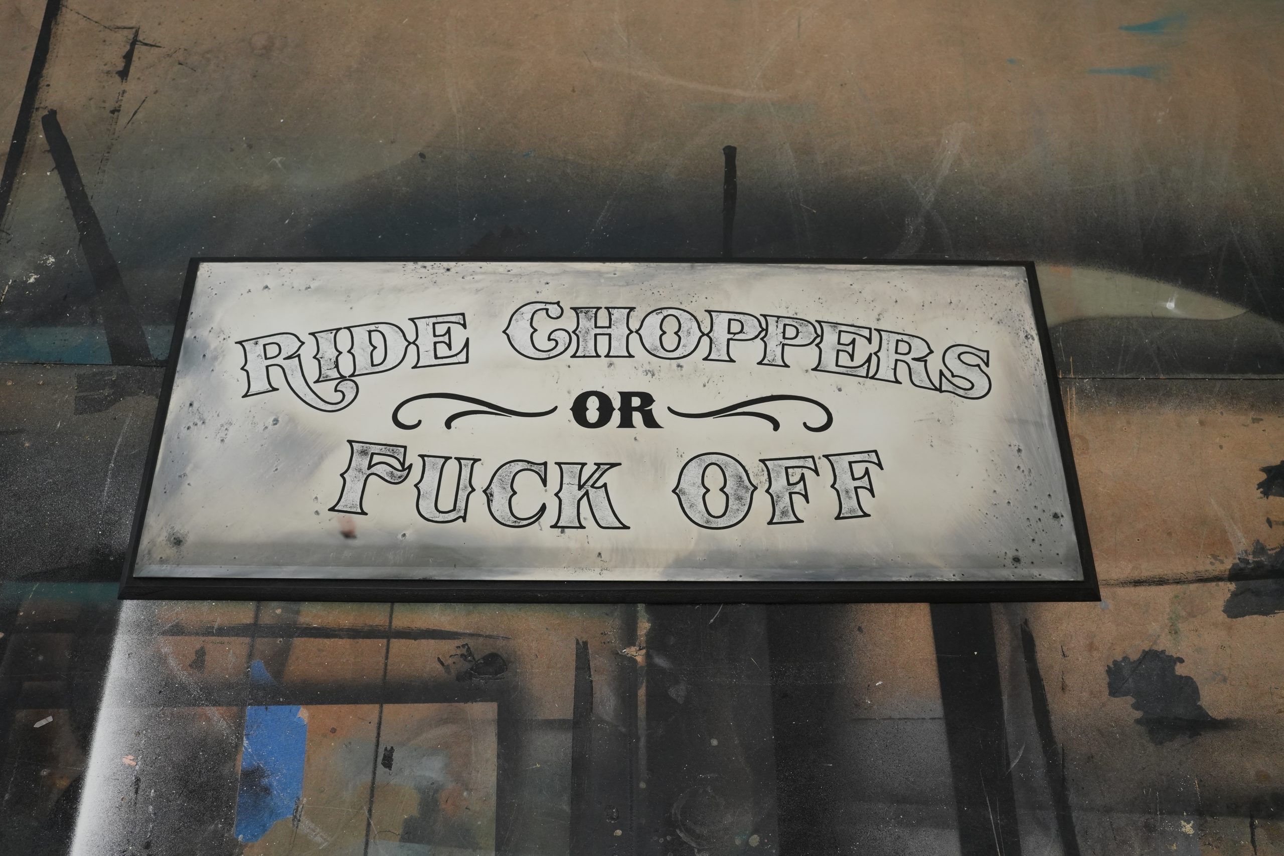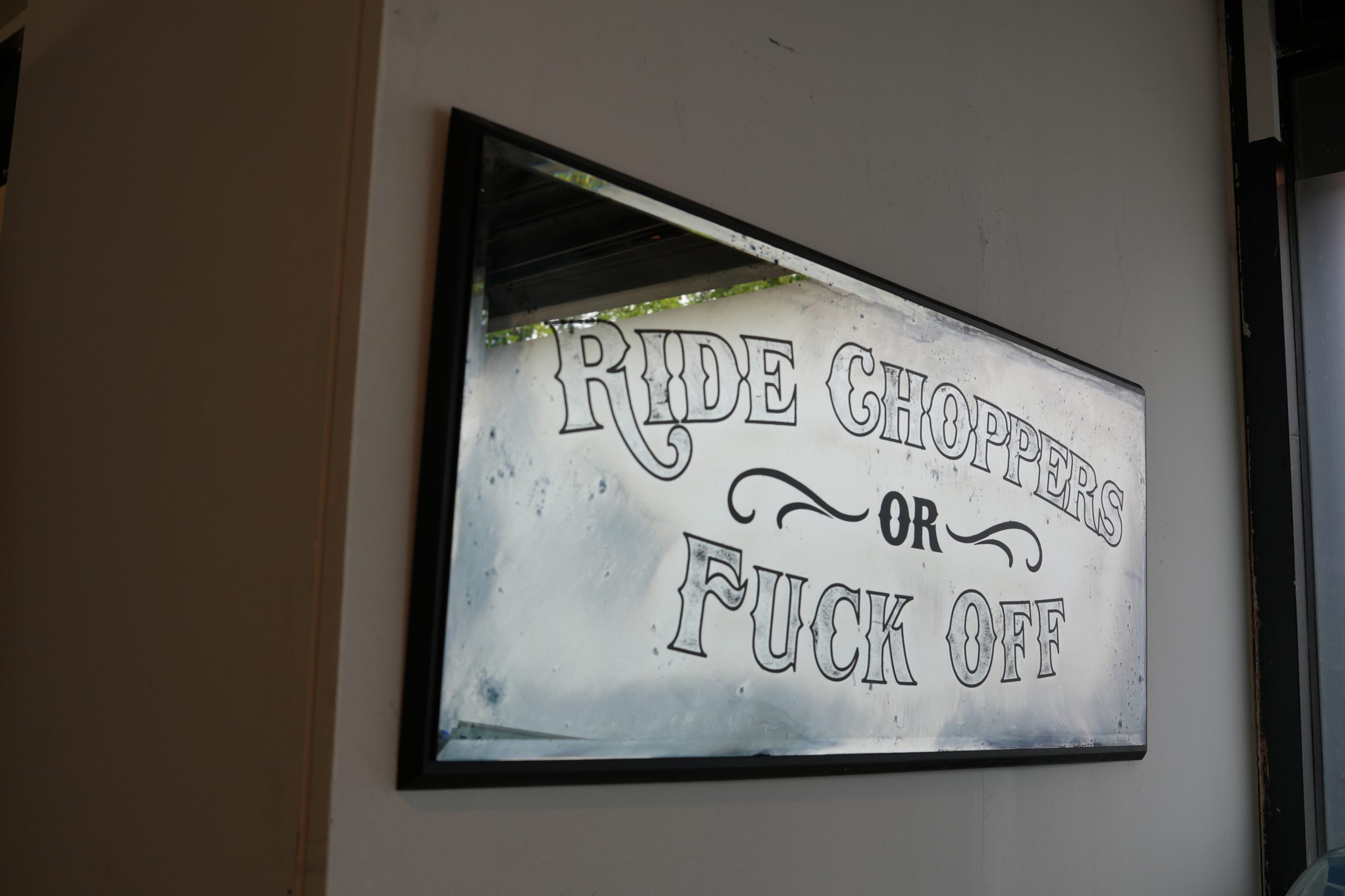 Make a bold statement with the Ride Choppers Or Fuck Off mirror, featuring one of the most iconic and unapologetic quotes from chopper culture. Hand gilded with genuine 24ct gold leaf, this piece demands attention and captures the rebellious spirit of the open road.